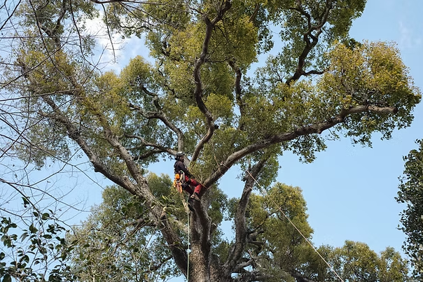 ○ロープワークを駆使した高木の特殊剪定・伐採