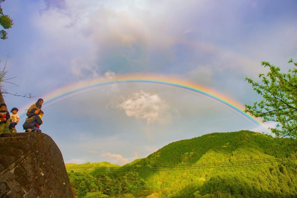 子どもも大人も動物も、みんな笑って泥だらけ!最後には祝福のダブルレインボーを見せて頂きました☆すべてに感謝!