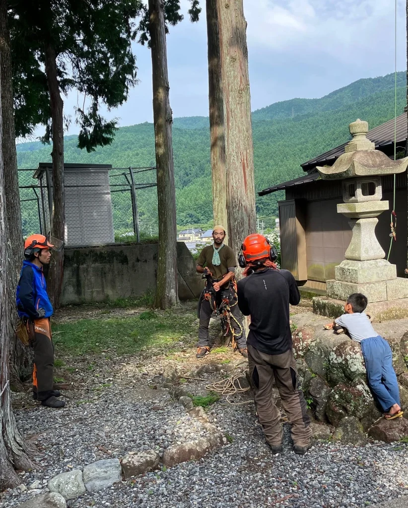 ご依頼頂いたのは南宮神社という神社で、神主さん曰く鐵(てつ)の神様をお祭りした神社とのこと。噂には月の暦の神様を祀った場所とも聞いていたのですが、今回で二度目の特殊伐採のご依頼でした。すぐ隣には幼稚園や小学校があり、昔から近所の子ども達の遊び場となっていた場所で、私自身も小さな頃に遊んだ思い出のある場所です。自分自身も大人になり、このような仕事をするようになって町内の方々にご依頼頂き、お力になれるのは何とも嬉しい限りです。